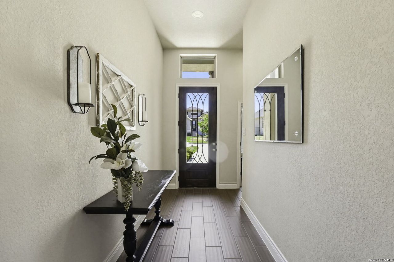 Welcome to The Grove at Vintage Oaks, where refined living meets everyday comfort. This stunning 4-bedroom, 3-bath Monticello home with a dedicated office showcases thoughtful design and elevated finishes throughout. Soaring 12-foot ceilings, custom ceiling treatments in both the study and family room, and 8-foot doors create a sense of openness and architectural sophistication from the moment you enter. At the heart of the home, the chef-inspired kitchen is designed to impress-featuring a 10-foot granite island, built-in appliances, an upgraded backsplash, and seamless flow into the spacious living area. Whether hosting lively gatherings or enjoying quiet evenings, this open-concept layout offers both functionality and style in equal measure.