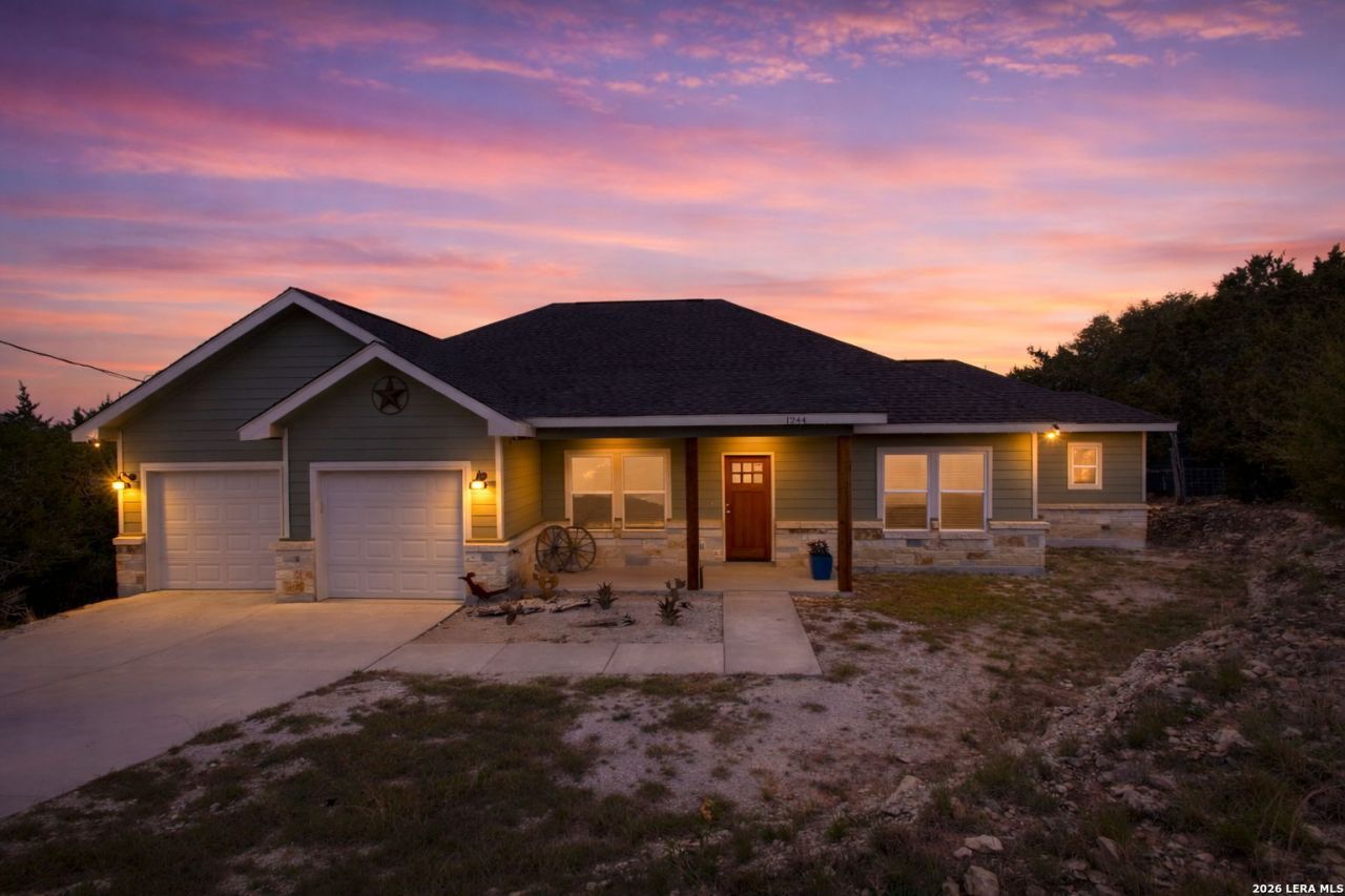 Discover the perfect Hill Country retreat just north of Canyon Lake! Nestled on a spacious half-acre lot in the highly sought-after Comal ISD, this beautifully maintained one-story home offers the ideal blend of privacy, comfort, and scenic Texas living. Designed with an open-concept floor plan and filled with natural light, this 3 bedroom, 2 bathroom home also features a dedicated office that can easily serve as a 4th bedroom-perfect for remote work or guests. The home has been very lightly lived in as a vacation property, making it feel like new construction without the wait. Step inside to find high ceilings throughout, expansive windows, and a seamless flow between the living, dining, and kitchen areas-ideal for entertaining or relaxing. The spacious primary suite is privately tucked away in the back corner of the home and features a spa-like bathroom with a large tiled walk-in shower and a deep soaking tub. Enjoy true Texas Hill Country living with both a covered front porch and a large back porch overlooking breathtaking views-perfect for morning coffee or evening sunsets. Located near Canyon Lake with convenient access to outdoor recreation, shopping, and dining, this property offers the tranquility of country living with modern conveniences nearby. Dont miss this rare opportunity to own a lightly lived-in Hill Country home on acreage.