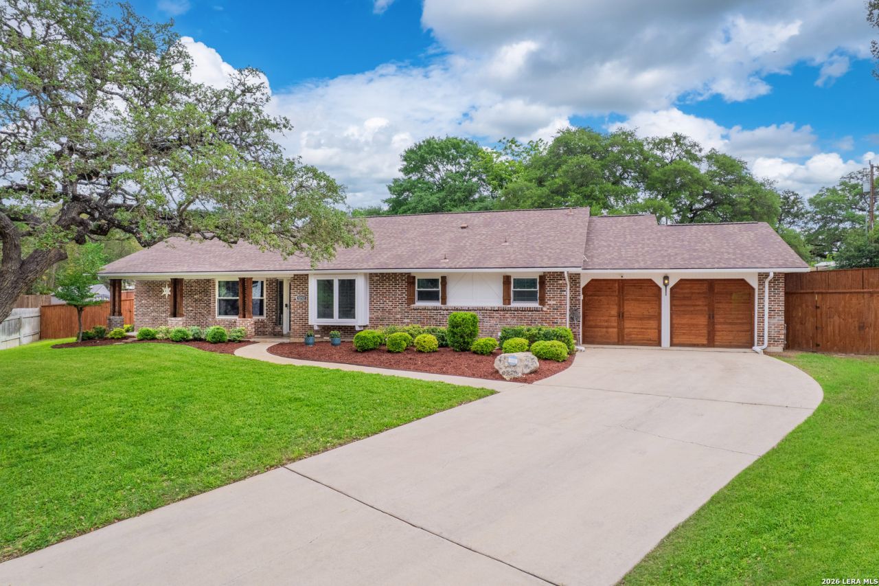 **VA asaumable at 2.5% with release of liability** Step into your own private outdoor oasis at 1252 Abbotsbury in Universal City. Situated on an expansive .42-acre cul-de-sac lot, this property truly shines with its resort-style backyard designed for entertaining and relaxation. Enjoy a heated in-ground pool with its own dedicated heat pump, powered in part by energy-efficient, paid-off solar panels. Surrounded by generous pool decking, theres ample space for large gatherings, complete with a large, covered patio featuring a mounted flat-screen TV -perfect for relaxing in the shade while enjoying the outdoor atmosphere. The lush green lawn, supported by a full sprinkler system, is framed by two mature Texas Live Oak trees, creating a serene and shaded retreat. With convenient alley access and plenty of room to host, play, or unwind, this backyard is the true centerpiece of the home. Inside, this impeccably updated 3-bedroom, 2-bath home offers 2,132 square feet of well-designed living space. The inviting living room features vaulted ceilings and a cozy gas fireplace with gas logs, along with dual access points to the backyard-seamlessly blending indoor and outdoor living. Beautiful real wood flooring flows throughout the main living areas, primary suite and office, while the kitchen and bathrooms are finished with tile, and the secondary bedrooms are comfortably carpeted. The chefs kitchen is a standout, boasting custom shaker-style cabinetry with soft-close drawers, granite countertops, a large island, breakfast bar, recessed lighting, a double bowl farmhouse porcelain sink, and two pantries. Stainless steel appliances include a smooth-top range with double ovens and a built-in microwave-ideal for both everyday living and hosting. The spacious primary suite features elegant French doors providing private access to the pool area, a spa-like oversized walk-in shower, double vanity, and a large modular walk-in closet. Secondary bedrooms include Elfa shelving systems for optimal organization. Energy efficiency meets convenience with solar panels that help power the home and heat the pool, along with updated dual-pane windows. The home includes two separate HVAC systems-one dedicated to the primary suite and main living areas, and another serving the secondary bedrooms-for customized comfort. The roof is approximately 10 years old. Additional highlights include full gutters, and a 475-square-foot garage featuring dual cedar doors with openers, an 11-piece steel garage storage system, and a mini-split heat pump for year-round climate control. Conveniently located near Olympia Hills Golf Course, The Forum shopping and dining, Randolph AFB, and BAMC, this home offers the perfect balance of outdoor luxury and everyday convenience. **Pool furniture and furniture in the house is negotiable **