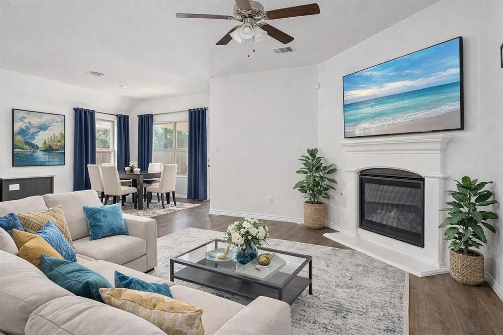 4-bedroom, 2-bath home built in 2021 offering 1,643 sq ft in a quiet, newer Anna ISD neighborhood. Open-concept layout includes quartz countertops, stainless steel appliances, and a spacious kitchen that opens to the living and dining areas. Private primary suite features an en-suite bath and walk-in closet. Three secondary bedrooms provide flexibility for guests, office, or additional living space. Large backyard with room to relax or entertain. Two-car garage and energy-efficient construction. NEW ROOF installed. Assumable VA loan at 2.8% available for qualified buyers. Convenient access to schools, parks, shopping, and dining.