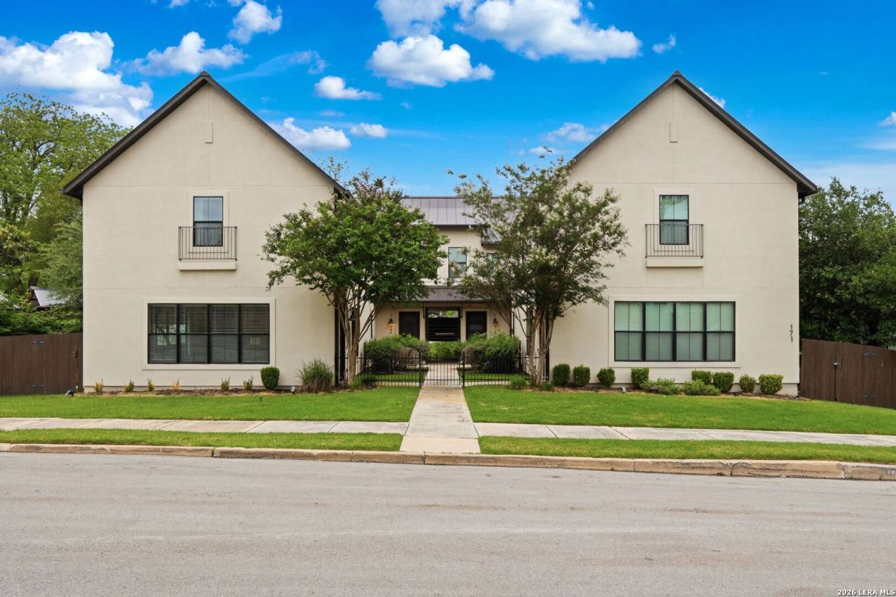Step into elevated, low-maintenance living in this beautifully updated 2-story condo, tucked within a boutique 4-unit community in the highly sought-after Alamo Heights ISD. Built in 2018 and thoughtfully enhanced throughout, this home blends modern style with everyday functionality-offering a true move-in-ready experience. The main level welcomes you with a light-filled, open-concept living and dining space, elevated by recessed and dimmable lighting to create the perfect ambiance for any occasion. The kitchen is both striking and functional, featuring quartz countertops, an accented waterfall island, gas cooking, pot filler, soft-close cabinetry and a walk-in pantry. A full suite of KitchenAid appliances adds to the homes elevated appeal, while double sliding doors open to a private, fenced patio with new turf and travertine steps-an ideal low-maintenance outdoor escape. Upstairs, the home transforms into a peaceful retreat. The primary suite offers a spa-inspired ensuite with a walk-in shower, dual vanities, and refined finishes that evoke everyday luxury. A generously sized secondary bedroom easily accommodates a king-size bed, while an additional bedroom features a stylish accent wall with wallpaper for an additional touch of personality. Both upstairs bathrooms have been beautifully updated with new marble vanities, complemented by new tile flooring, modern mirrors, and contemporary fixtures. New luxury vinyl plank flooring flows throughout the second level, and a newly installed stairway railing ties the design together. For added convenience, the stackable washer and dryer are thoughtfully located upstairs near the bedrooms. With renovations already taken care of, low HOA fees, only four units in the community, and two assigned covered parking spaces just steps from your door, this home offers an ideal balance of style, comfort, and ease. Ideally situated just minutes from The Pearl, Downtown San Antonio, The Quarry Market, and the San Antonio Country Club, youll enjoy effortless access to premier dining, shopping, golf, and parks. A sophisticated, low-maintenance lifestyle-beautifully designed and ready to be enjoyed.
