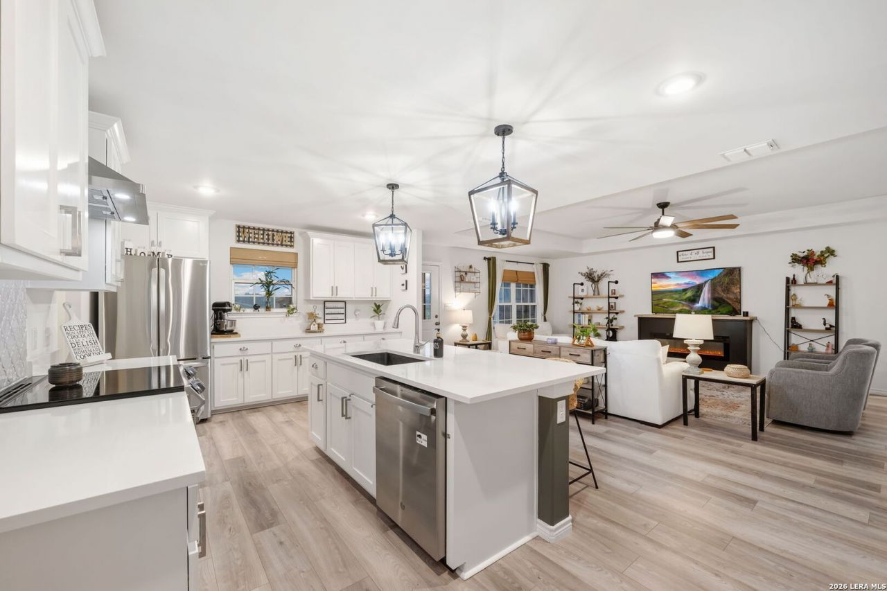 Built just 3 years ago by United Built Homes, this thoughtfully designed one-story sits on 1.17 private acres in La Vernia with no neighbors directly behind-just open views and grazing cattle. Offering 4 bedrooms, 2.5 bathrooms, and 2,164 square feet, the layout is both functional and intentional. The primary suite is tucked away from the secondary bedrooms for privacy, near the utility room, and features two walk-in closets along with a beautifully finished walk-in shower with subway tile backsplash. Just outside the suite, a flexible nook creates the perfect space for a coffee bar or additional storage. Inside, the home feels open yet purposeful, with defined spaces that allow room to breathe while still maintaining a natural flow for everyday living. The exterior is where this property really stands out. Outdoor lighting highlights the home and landscaping, while the large covered patio extends your living space outdoors. A pergola with bar seating creates a true backyard entertaining setup, complemented by a grilling area, smoker space, and plenty of room to entertain. An oversized two-car garage and shed provides extra storage and functionality, and the welcoming front porch adds to the homes country charm. If youve been wanting the feel of a custom home without the wait to build, this property delivers-combining craftsmanship, smart design, and wide-open space in a private setting. All just minutes away to San Antonio!