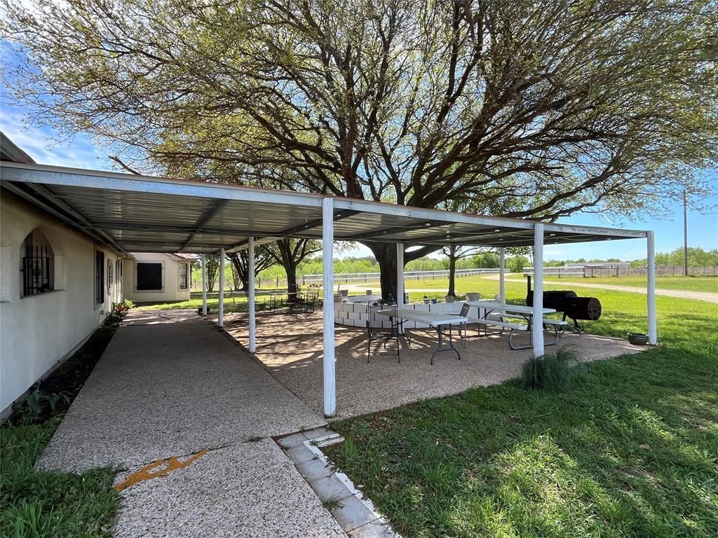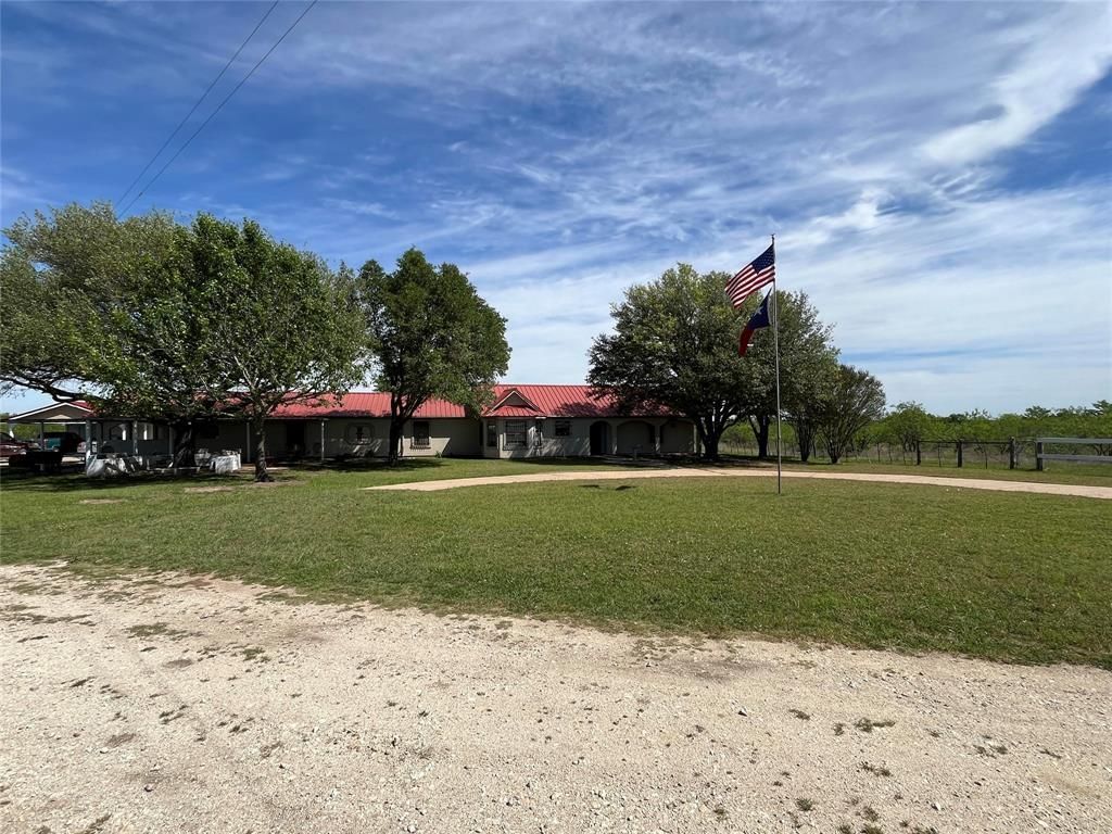 Country living at its best! This 3-bedroom 2-bathroom home offers 2609 square feet of living space. The home features a metal roof, dryvit exterior, and a slab foundation. It has an attached 2-car carport and a detached 2-car carport providing convenient covered parking and easy access to the home. Nice metal shop and covered parking area for equipment. The land has a nice mixture of open to woods, Christmas creek meanders through the property, multiple stock tanks for the wildlife and livestock, ideal for anyone looking for a working ranch, weekend getaway, or full-time country residence. Large live oak trees surround the home creating a peaceful setting, while the long driveway leads you into your own private retreat!