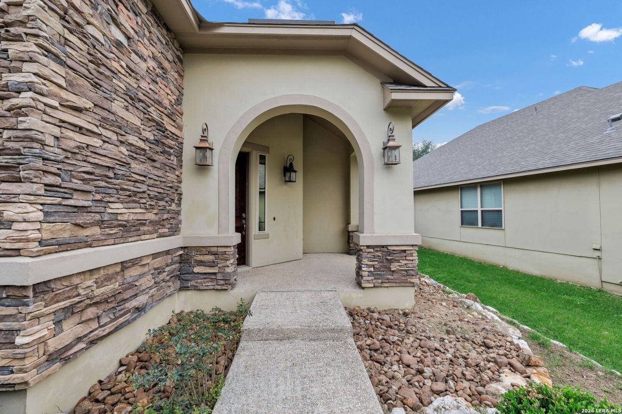 Experience life in the highly sought-after Heights at Stone Oak a gated community designed for comfort, security, and everyday ease. While the photos impress, this home truly shines in person. Inside, an open and spacious floor plan welcomes you with soaring ceilings and expansive windows that flood the space with natural light. The seamless flow between the kitchen, living, and dining areas creates the perfect setting for both relaxing and entertaining. The gourmet kitchen is a standout, featuring granite countertops, gas cooking, built-in appliances, and generous prep space for any culinary need. The primary suite offers a private retreat with tray ceilings, a ceiling fan, a large walk-in closet, and a spa-like bathroom complete with an oversized shower and soaking tub. Two additional bedrooms provide versatile options for guests, a home office, or creative space. Additional upgrades include tankless water heater, water softener, and an oversized two-car garage with new epoxy coated floor. Located within the highly regarded North East Independent School District, the fantastic neighborhood amenities include a junior Olympic size pool, tennis courts, a basketball court. The location is unmatched with quick access to HEB Plus, Stone Oak hospitals, shopping and dining. This is a home and community people wait for, offering convenience, privacy, and an effortless way of living. WELCOME HOME!