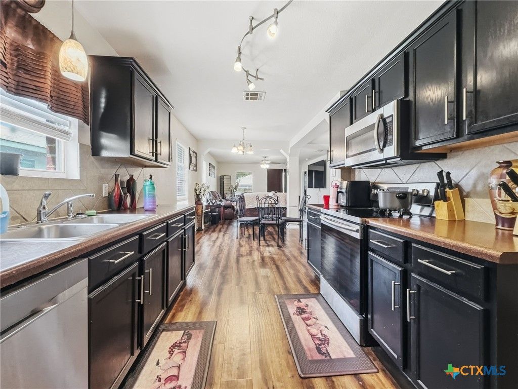6510 Taree Loop presents a very affordable brick veneer single-story home, designed for practical living with comfortable, open spaces and a highly convenient location. The curb appeal is immediate: a classic brick façade, mature shade tree, and a two-car garage set the tone. Inside, the layout opens into a spacious living area with durable wood-look flooring and plenty of natural light?ideal for everyday living or entertaining. The kitchen is functional and modernized with dark cabinetry, ample counter space, and a full appliance suite, flowing directly into both dining and living areas for a seamless feel. The home offers a split-bedroom layout with a generously sized primary suite featuring a tray ceiling and en-suite bath. Secondary bedrooms are well-proportioned. The dedicated dining room adds flexibility?use it as a formal space, office, or flex room. Out back, the property features a private fenced yard with a covered patio?usable year-round and large enough for gatherings, pets, or future improvements. Location is a major advantage: Minutes to Fort Fort Hood, making it highly attractive for military buyers or renters. Quick access to Killeen-Fort Hood Regional Airport for travel convenience. Close to major shopping, dining, and entertainment corridors. Easy drive to Central Texas College and Texas A&M University?Central Texas. Positioned for strong rental demand and resale liquidity due to proximity to employment centers. Overall, this is a solid, easy to maintain property with broad appeal?ideal for owner-occupants, investors, or anyone needing proximity to base and key Central Texas hubs.