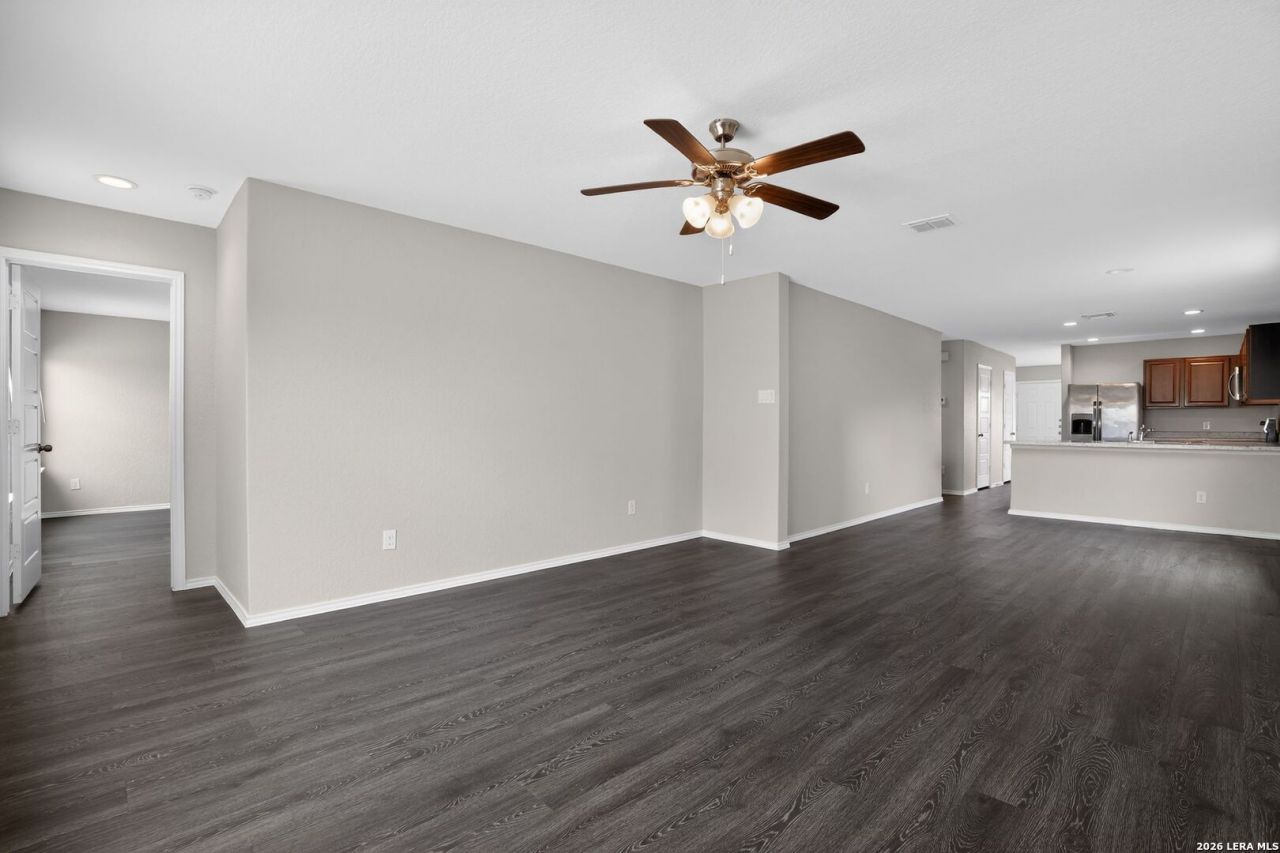 Welcome to this beautifully maintained, modern ranch-style home in the desirable Ackerman Gardens community of Converse! Built in 2021 by LGI Homes, this 3-bedroom, 2-bathroom residence offers a spacious 1,642 square foot open-concept floor plan designed for seamless living and entertaining. The heart of the home is a chef-inspired kitchen featuring elegant granite countertops, a large breakfast bar, and a full suite of high-end stainless steel appliances. Retreat to the private primary suite, complete with a generous walk-in closet and an en-suite bath. Two additional bedrooms provide flexibility for family, guests, or a dedicated home office. Modern luxury vinyl plank flooring flows through high-traffic areas, paired with neutral carpeting for comfort in the bedrooms. Enjoy the privacy of your fully fenced backyard and the convenience of an attached two-car garage. Located on a quiet cul-de-sac just minutes from Randolph AFB, Fort Sam Houston, and the HEB Marketplace, this home offers the perfect blend of suburban tranquility and city accessibility with no high Metro District taxes.