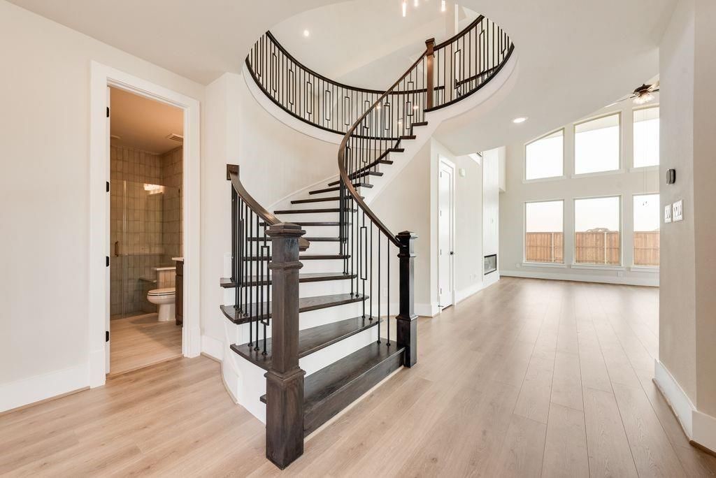 Experience elevated living in this stunning new construction by Grand Homes, ideally located in the exclusive Gated community of Park Place in Prosper with neighborhood pool & pickleball court. Boasting over 4,400 square feet, this thoughtfully designed two-story home offers 5 spacious bedrooms, 4 full baths, and a versatile layout tailored for both everyday living and entertaining. Step inside to a dramatic entry featuring a curved full oak staircase and soaring ceilings, creating an unforgettable first impression. The open-concept design seamlessly connects the living, dining, and chef’s kitchen—complete with quartz countertops, a large island with waterfall sides, commercial-style stainless steel appliances with 6 burners & griddle, double ovens, and abundant natural light—perfect for hosting gatherings or enjoying quiet evenings at home. The primary suite is conveniently located on the main level, offering a private retreat with free standing tub, champagne plumbing fixtures & frameless glass shower. Additional highlights include a dedicated office, downstairs guest suite, multiple living areas, and an upstairs game room, media room plus a bonus room providing flexibility for work, play, and relaxation. Situated on an oversized corner 80-foot lot, this home also a covered back patio and modern finishes throughout. Residents of Park Place enjoy resort-style amenities including a community pool, pickleball courts, scenic walking trails, playground, and a beautifully appointed amenity center—all within a secure gated setting. Zoned to highly rated Prosper ISD schools and conveniently located near major highways, shopping, dining, and entertainment, this home offers the perfect blend of luxury, comfort, and convenience. Don’t miss the opportunity to own this exceptional home in one of Prosper’s most desirable new communities!