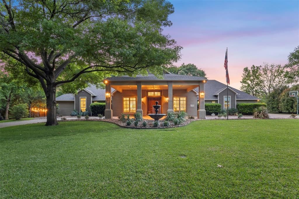 Fully reimagined sprawling single-story estate on a rare 1-acre creek lot with no HOA, tucked at the end of a private cul-de-sac in the heart of Frisco. Opportunities of this scale and setting are exceptionally limited, offering a rare blend of privacy, space, and proximity. A circular drive and porte cochère create a refined arrival, framed by mature trees and expansive grounds that feel worlds away. Taken to the studs and thoughtfully redesigned, the 4,492 SF residence is filled with natural light and defined by European white oak flooring and elevated, timeless finishes throughout. The single-story layout offers both openness and intentional separation, with four bedrooms—each with its own en suite—alongside a dedicated office, multiple living areas, and a private gym. A guest suite is further distinguished by hand-beveled wood flooring. The kitchen serves as the heart of the home, anchored by a statement island and appointed with a SubZero refrigerator, gas range, abundant custom cabinetry, and striking quartzite countertops with a full-height quartzite backsplash—equally suited for intimate daily living or elevated entertaining.The primary suite is a true retreat, featuring generous scale and dramatic wall-to-wall windows overlooking the manicured grounds and pool, while a rare secondary primary suite offers its own private patio with direct backyard access—ideal for guests or multigenerational living.Outdoors, the experience is resort-caliber, with manicured mature trees, turf, and layered landscaping surrounding a saltwater pool finished in PebbleTec. A 540 SF covered patio with wood-burning fireplace and motorized shades creates seamless indoor-outdoor living designed for year-round enjoyment. Modern convenience is seamlessly integrated with Lutron lighting, extensive system updates, a 3-car garage, tornado shelter, and multiple storage rooms—delivering a rare combination of luxury, comfort, and livability in one of Frisco’s most desirable locations.